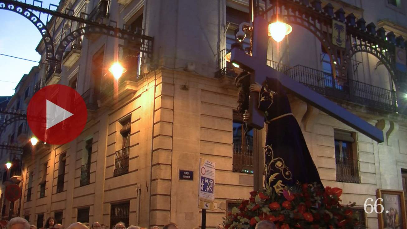 La segona processó de Setmana Santa ha esdevingut el comiat entre la Mare de Déu dels Dolors i Jesús Natzaré amb una emotiva reverència. El Cantó Pinyó ha tornat a ser testimoni d'aquest moment tan emotiu per a tots el fidels d'Alcoi.