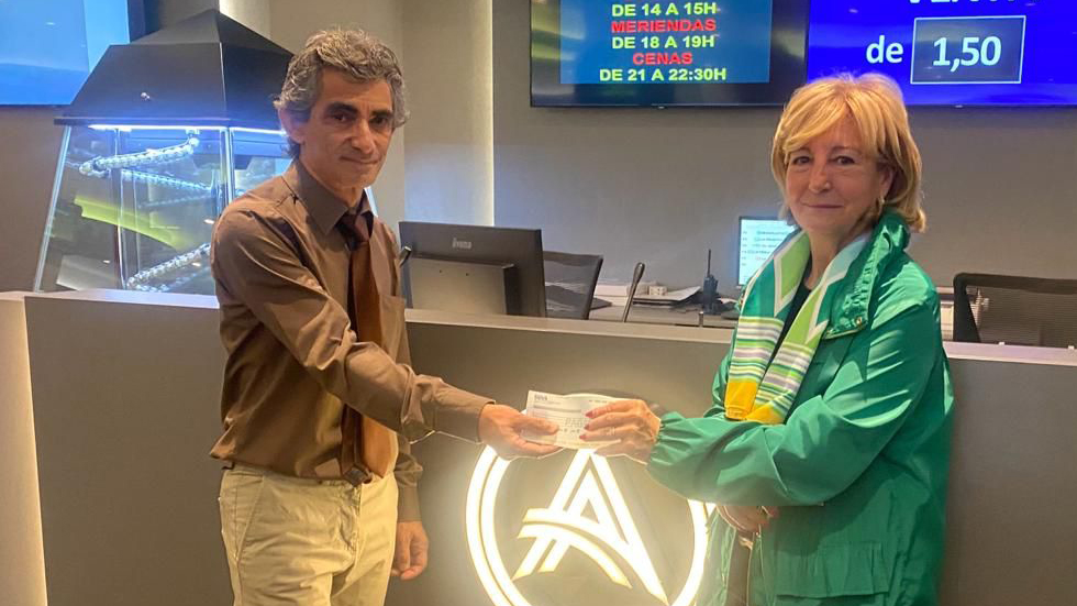 Els detalls: Lirios Aracil, presidenta de l’Associació de Familiars i Amics de Malats d’Alzheimer d’Alcoi i Comarca (AFA Alcoi i Comarca) ha arreplegat el xec que li ha donat Rafa Nadal, representant de Bingo Alcoy.