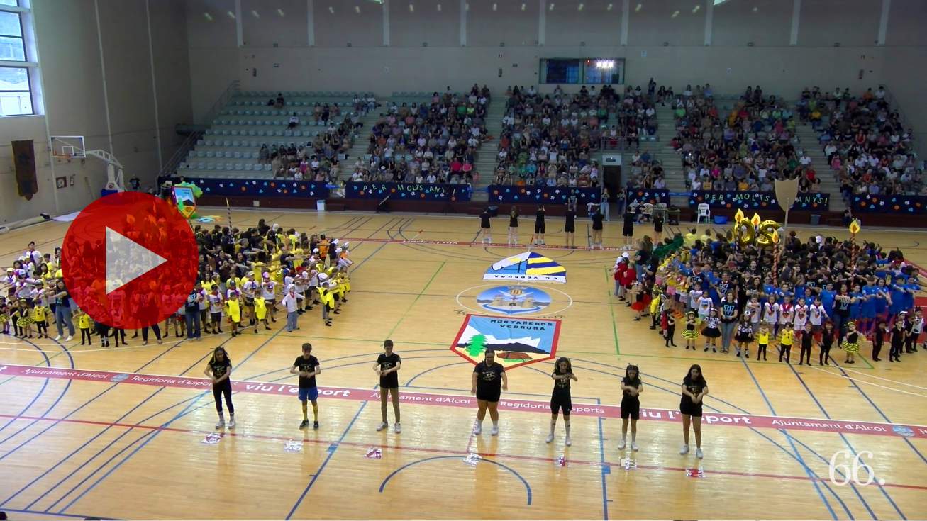 La segona part s’ha dedicat al club esportiu on la mascota ‘palometa’ ha ‘reclutat’ a tots els xiquets i xiquetes sedentàries i els ha ‘fitxat’ al seu club. Junts, han recordat els inicis del club. Durant totes les actuacions, els diferents cursos han ballat amb una gran varietat de música i ambient que ha fet gaudir al públic. A més, tots els alumnes han format dos pastissos gegants per a celebrar l’aniversari d’aquests clubs tan importants per al centre.