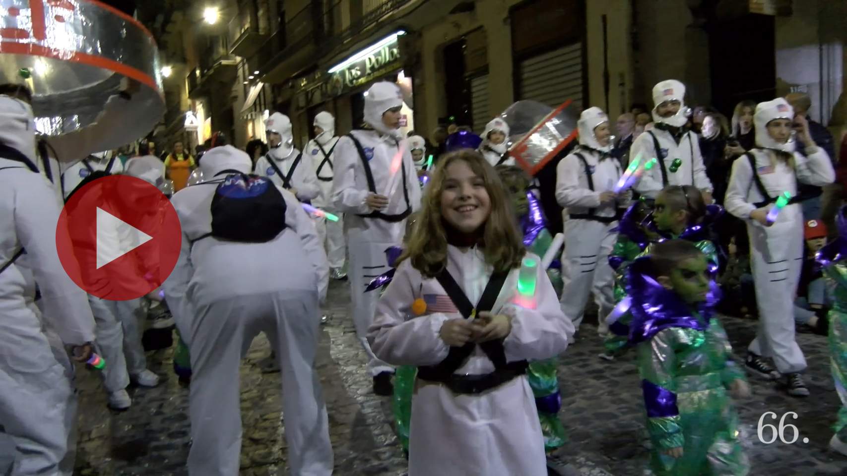 Alcoi ha tornat a lluir les seues disfresses a la desfilada pels carrers del Centre d’Alcoi al ritme de la música de la batucada i els ballets, una setmana després dels municipis veïns.