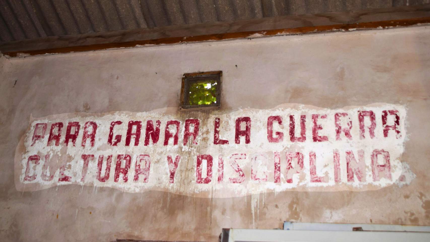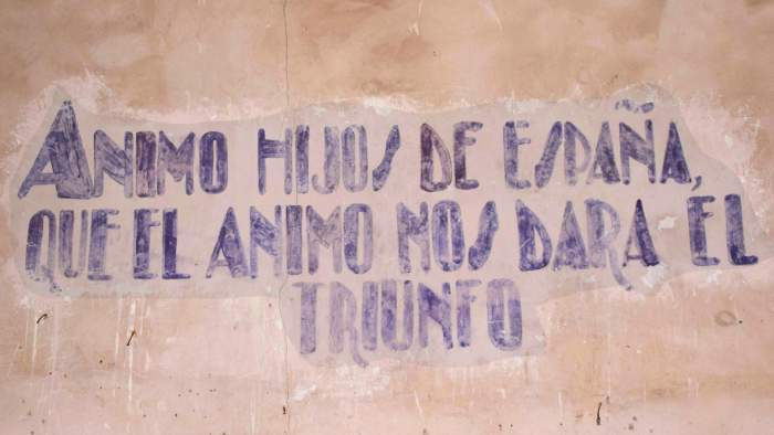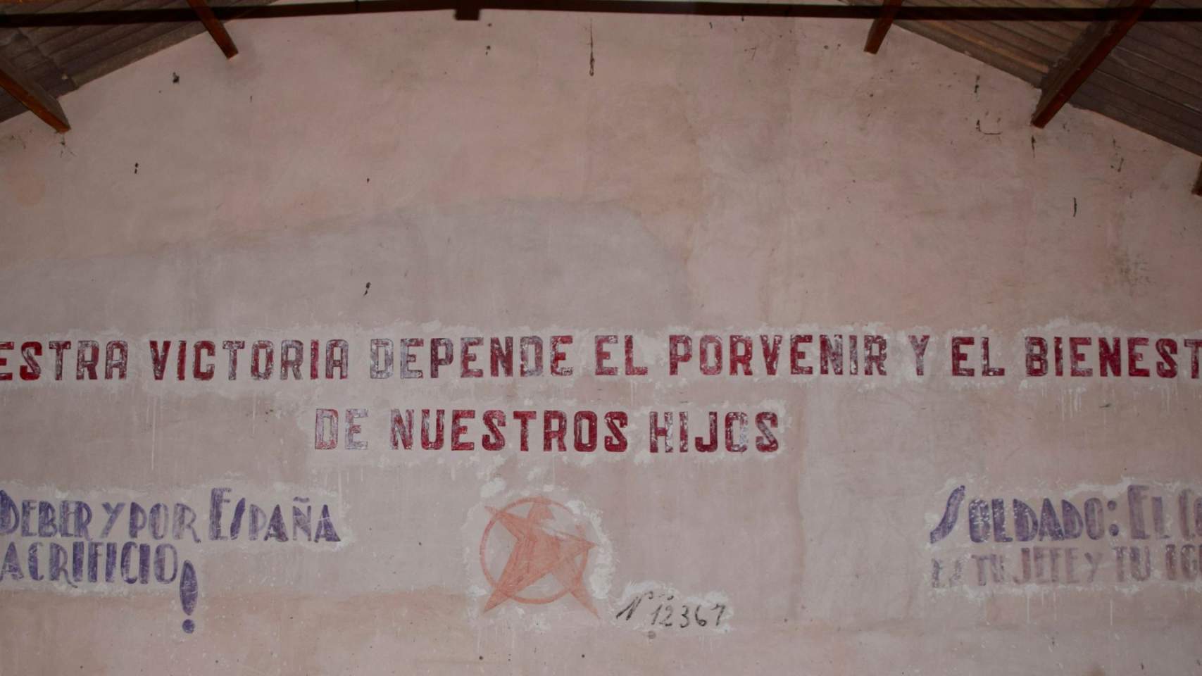 Una part del mural / Foto: ADCLa recuperació d’una antiga peça d’arqueologia industrial en una antiga fàbrica de Cocentaina ha facilitat una troballa d’importància europea. I es que el Centre d’Estudis Contestans (CEC) ha descobert un mural ple de consignes polítiques fet durant la Guerra Civil espanyola.