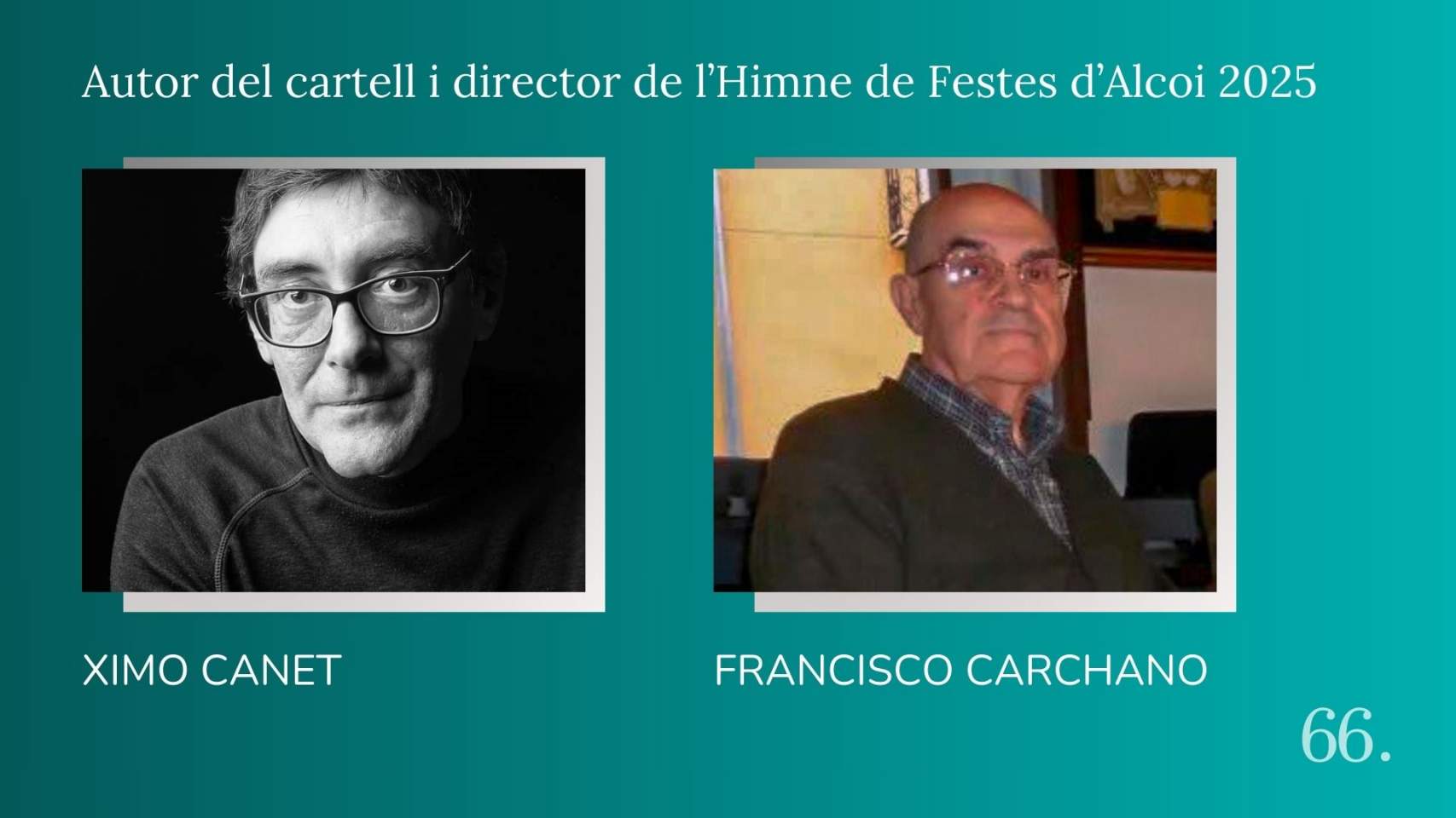 Com cada any, al voltant dels dies de celebració del Mig Any fester arriba una de les notícies més esperades per molts: qui farà el cartell i qui dirigirà l’Himne de Festes d’Alcoi 2025. L’Ajuntament, que s’encarrega d’aquesta decisió, ha comunicat els dos noms: Ximo Canet pintarà el cartell i Francisco Carchano obrirà la festa el pròxim 2 de maig de 2025, dia dels Músics.
