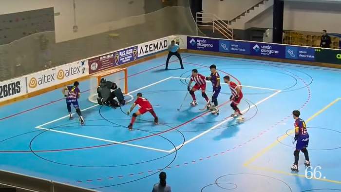 El empate se ha hecho esperar 6 minutos. A catorce del descanso, otra azul a Tato Ferrucio, que el nuevo fichaje del Alcodiam, el gallego Pablo del Río ha convertido en un bellísimo regate que termina subiéndola hacia la escuadra en las narices del excelente portero del Liceo, Martí Serra. 1-1.