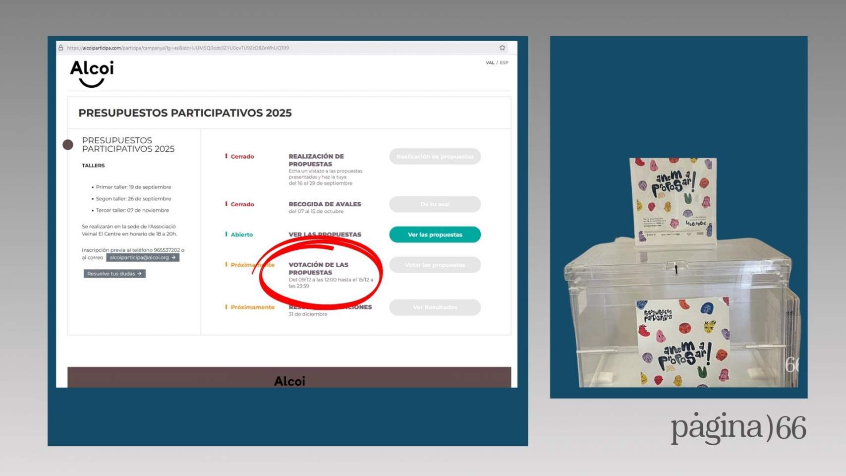 A partir de las 12 del mediodía de este lunes 9 de diciembre cualquier persona mayor de 16 años empadronada en Alcoy podrá votar las propuestas seleccionadas para llevar a cabo con los 400.000 euros de los Presupuestos Participativos.