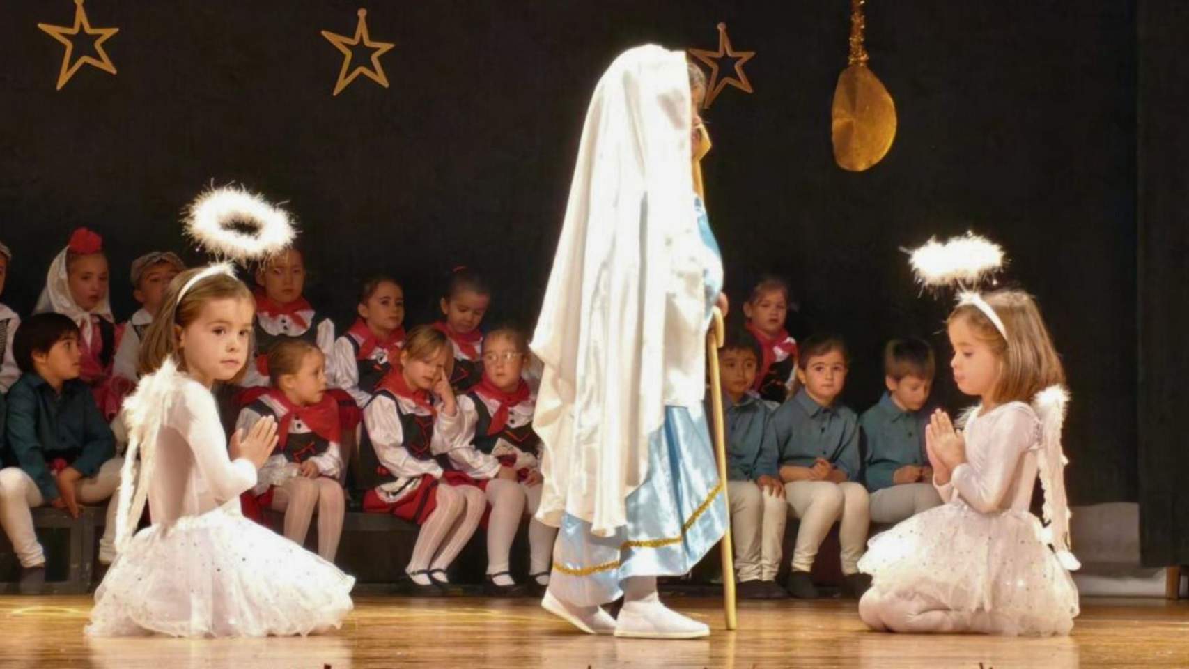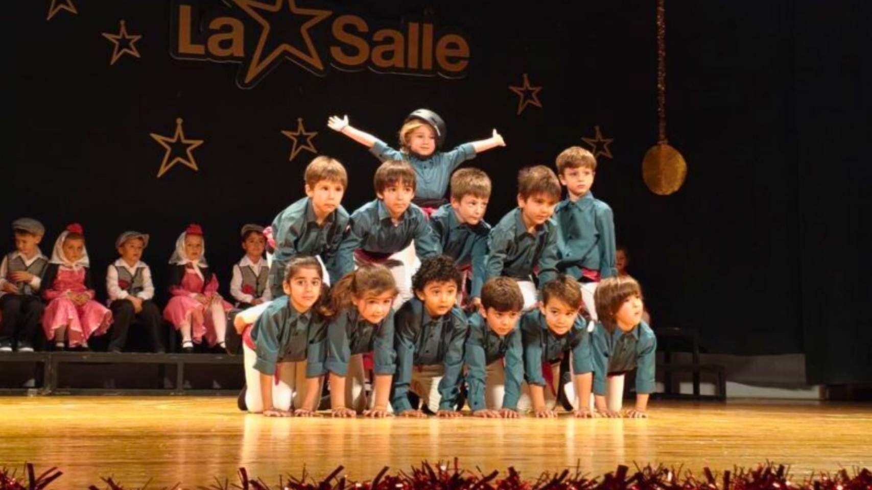 Un dels moments més emocionants de la funció / Foto LSAEl Nadal ha omplit el teatre dels Salesians amb una llum especial gràcies al Festival de La Salle Alcoi, que enguany ha convertit l’escenari en un gran aparador del nostre folklore, de la nostra cultura i tradicions. Baix el títol Un viatge per Espanya, l’alumnat d’Infantil ha aconseguit commoure mares i pares amb una actuació plena de vida, ritme i tendresa, guiada per tres ‘mini’ turistes de Londres, París i Roma.