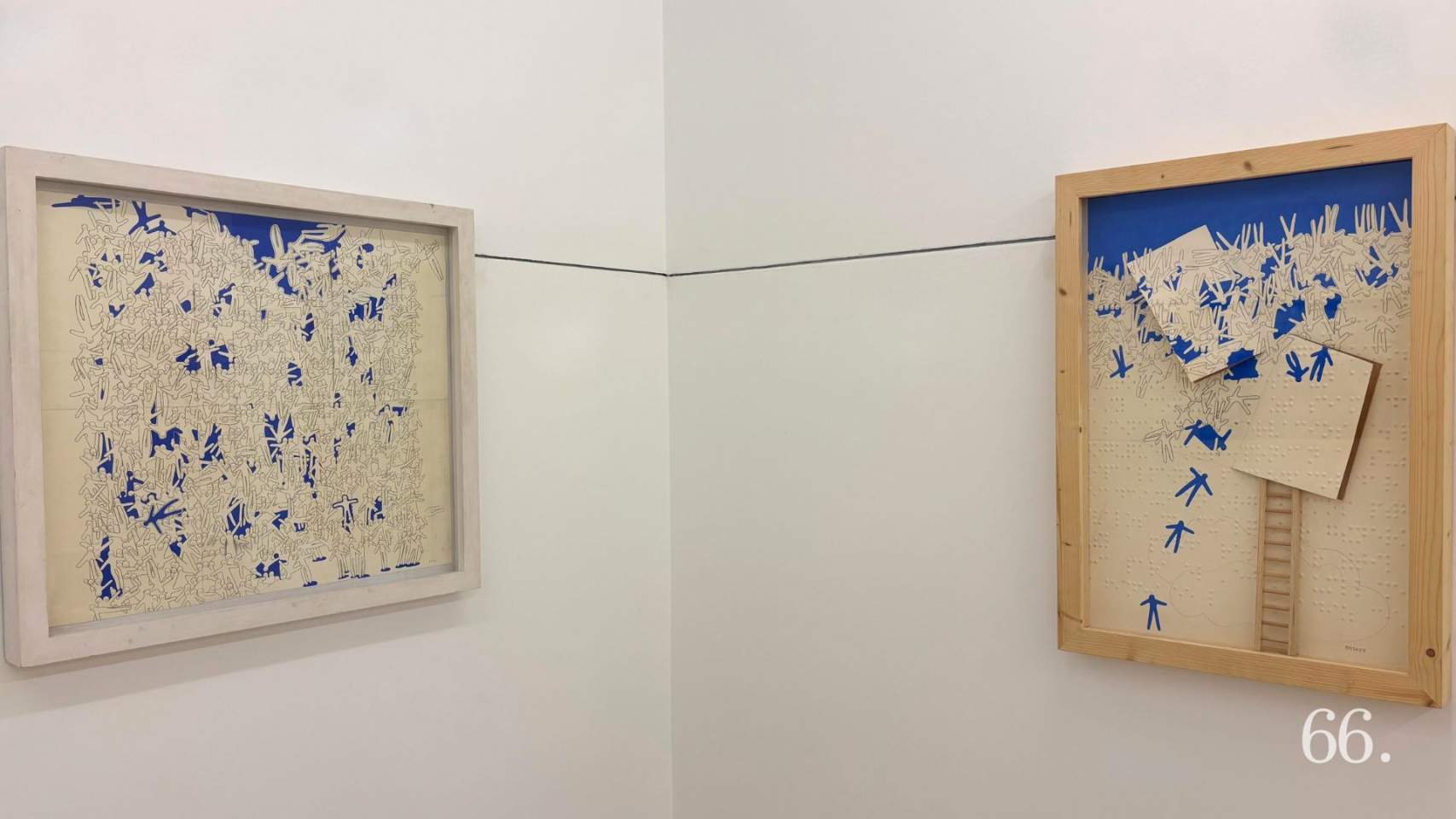 Aquest, segons Hernández, guarda un enigmàtic secret, un missatge que "després serà habitat per homenets que afegeixen una altra capa, que deixa veure l’anterior treball". I és que, en moltes de les obres d’aquesta mostra, els homenets estan presents, tancant els dibuixos i aportant significats.