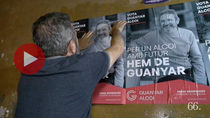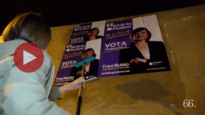 Pegada de carteles de ADIN Alcoy para la campaña de elecciones municipales 2023