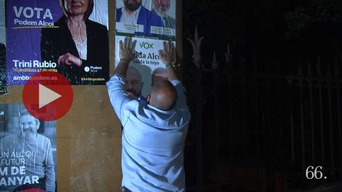 Pegada de carteles de Vox Alcoy para la campaña de elecciones municipales 2023